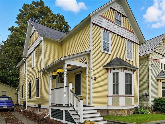 A rare opportunity to own a beautifully restored and meticulously maintained Burlington Hill Section home, perched at the top of Loomis Street within walking distance to the university, medical center, downtown schools, and some of Vermont's best shopping and dining. Originally built by renowned architect John Roberts, who designed over 50 Burlington homes at the turn of the 19th century, this property showcases timeless craftsmanship and thoughtful updates throughout. Intricate gable detailing greets you from the exterior, while inside, refinished hardwood floors and abundant natural light create a warm, inviting atmosphere. A first-floor bedroom or office with an en suite bath features a custom walk-in tile shower, while the airy living spaces and cozy sunroom offer ideal spots for entertaining or relaxing. The open kitchen blends modern convenience with classic charm, offering granite countertops, stainless appliances, and ample cabinetry. Upstairs, you'll find four spacious bedrooms and a beautifully updated bath with a walk-in shower and convenient second-floor laundry. Modernized electric/wiring, plumbing/Kholer fixtures, central heat & A/C, roofing and historically correct high end Pella & Marvin windows, all meeting local efficieny standards, provide peace of mind, while historic character shines through every detail. This truly special home embodies Burlington's rich history with all the comforts of today. Schedule your showing and experience it for yourself!