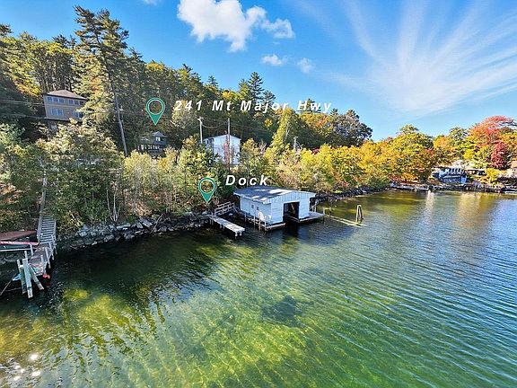 PRIME LOCATION & PRICE POINT! Wake up to breathtaking lake views from nearly every room in this waterfront home on Lake Winnipesaukee. With water access and a private approx. 32' dock, you’ll enjoy endless opportunities for boating, fishing, swimming, or simply relaxing by the waterfront. Inside, the home features two living rooms—one on each level—each with its own cozy fireplace, including a brand-new gas insert on the main floor for effortless comfort. Both upstairs bedrooms open to a private deck overlooking the lake, ideal for morning coffee or sunset views. Recent updates include new mini-split systems for efficient heating and cooling. This property is in a PRIME location and you will not find a lakefront property with a dock at this price point! Experience lakeside living at its finest on Lake Winnipesaukee.