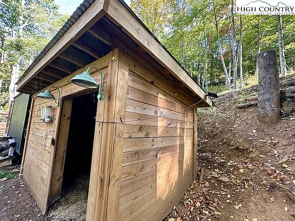 This property comes with a tiny house that would be sold as is with a large 10x12 storage shed, two large decks, a sunroom, wood fired hot tub, and outdoor shower. 2 bed septic installed and electric available . Fiber optic has been run to it. It has propane, electric heat, and a wood stove. It is walking distance to Ashe Park which hosts a stocked fishing pond, playgrounds, grill sites, fall festivals, the Ashe county fiddlers convention, and a renowned disc golf course. The house is 13 minutes from downtown Lansing, 7 minutes from downtown West Jefferson. There is wiring for solar and solar panels included but no inverter or battery. The house has an RV plug for the utility pole but can easily be switched to a generator. New skirting and insulation provides protection to the water lines from outdoor elements. There is an instant hot water heater with a user friendly access panel in the main room of the mini house. The sunroom offers extra lounge space The garden below the fenced yard has a few raspberry, elderberry, and blackberry bushes, a pear and peach tree were planted last year.