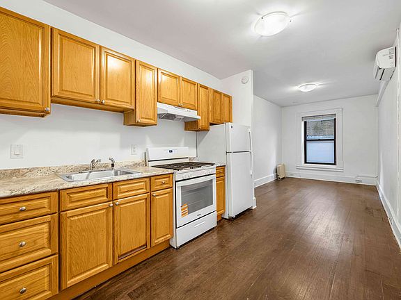 Apt. #3 is a spacious, well-proportioned ground-floor studio featuring high ceilings, hardwood floors, and a full-size kitchen. The home is equipped with a wall-mounted split-system AC/heat unit for efficient, year-round climate control.