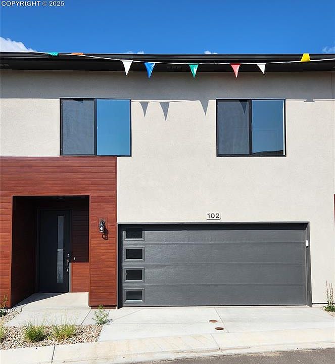 Nestled in the charming town of Monument, this beautifully designed townhome with 2 beds, 1 bath and a 2 car garage offers a rare opportunity to enjoy modern comfort, style, and functionality. As part of a thoughtfully crafted triplex, this unit features an attached two-car garage on the main level, with spacious living areas above. Step into contemporary elegance with vaulted ceilings that enhance the open, airy feel, while modern upscale finishes—such as granite countertops in the kitchen and bathroom, along with luxury vinyl flooring—add a touch of sophistication. The open-concept floor plan is perfect for entertaining or unwinding, with large windows inviting in abundant natural light to create a warm, welcoming ambiance. Located in a peaceful neighborhood yet just moments from Limbach Park, Monument Lake, restaurants, and shops, this home blends small-town charm with modern convenience. With easy access to I-25, both Denver and Colorado Springs are just a short drive away. Whether you're a homeowner or an investor, this versatile property presents an exceptional opportunity in one of Colorado’s most desirable locations. Don’t miss out on this opportunity!