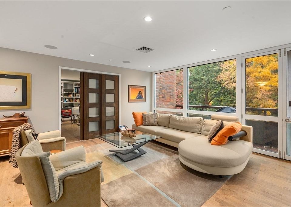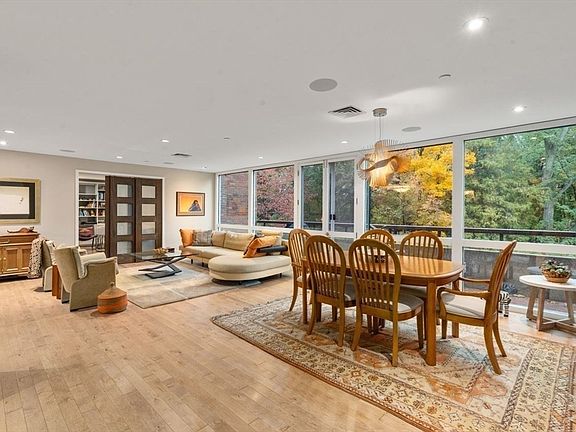 Rarely available one-level condo at Cabot Estate. Quiet back-facing unit in an elevator building with seasonal views of Jamaica Pond. Complete meticulous gut renovation with high-end finishes throughout. Features include aged maple floors, custom Italian kitchen with induction cooktop, beach-glass backsplash, and premium appliances. Expansive open dining and living area with floor-to-ceiling windows and access to private balcony. Separate media room off kitchen. Primary suite offers three custom closets and luxury bath with soaking tub, double vanity, and heated tile floors. Second bath also features heated floors. Office area overlooks beautifully landscaped grounds. New heating system, extra storage, and two garage parking spaces. Designer light fixtures and window shades included. Cabot Estate is a gated community on 23 landscaped acres offering 24-hour security, pool, tennis courts, and exercise facility. Conveniently located across from Jamaica Pond with acess to everything!