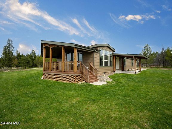 Experience the peace and beauty of the HooDoo River Valley from this spacious 4-bedroom, 2-bath manufactured home on 10 private acres. Enjoy panoramic Big Sky mountain and valley views while sipping coffee on the deck or fishing the serene river running through your property. With 2,280 sq ft of living space, the home features vaulted ceilings, large view windows, and an open floor plan that fills the home with natural light. The generous kitchen offers abundant counter space and cabinetry, while a wood-burning stove adds cozy charm. The primary suite includes a soaking tub and separate shower. Outside, a 30x40 detached 3-car garage/shop provides room for hobbies and storage, plus there's a heated chicken coop, stacked firewood, and the benefit of a timber exemption—ideal for those seeking a private, self-sufficient Idaho lifestyle.