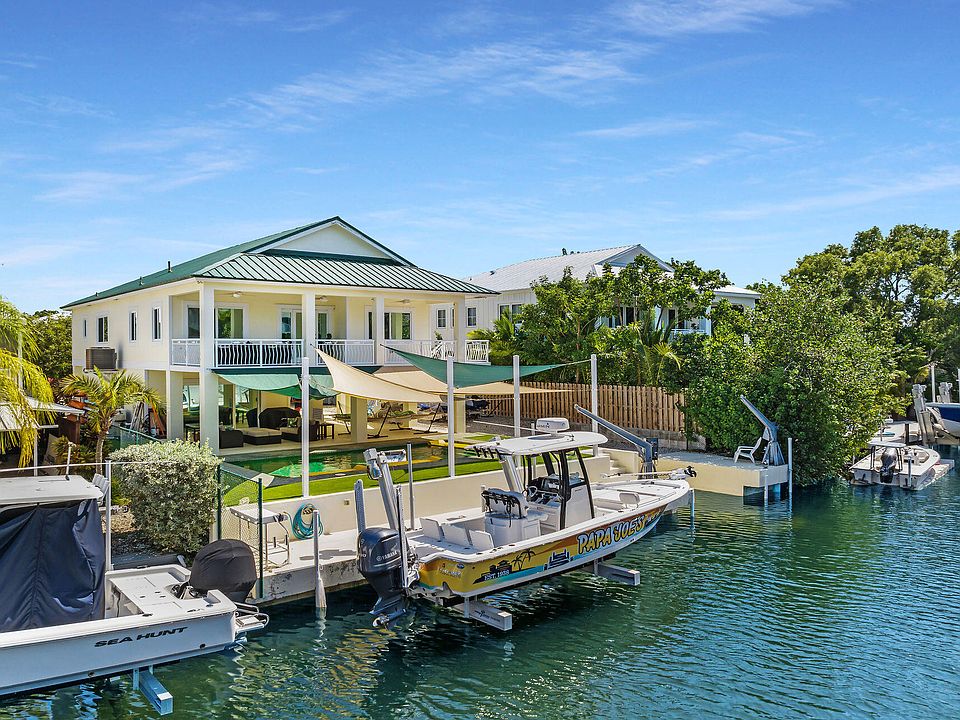 Are you in search of a modern waterfront home in Islamorada? This ready-to-move-in property comes complete with a heated swimming pool, a boat lift, boat davits for your smaller watercraft, and the convenience of an onsite boat ramp. The upper level features three bedrooms and two bathrooms and the spacious guest area downstairs can comfortably accommodate your friends and family. This property has been elevated substantially prior to construction.