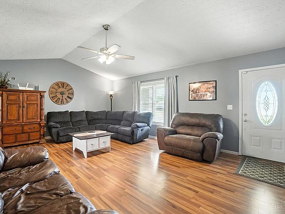 Beautiful open floor plan built in 2005. Approx 1936 sq ft. Inviting large family room with vaulted ceilings. Spacious kitchen/dining with island and french doors that open onto the back deck that is ideal for entertaining. Mud room off the garage with half bath perfect for dropping items but keeping them out of the way! Master bedroom provides two closets, one a walk in. Updated master bath with double vanity. New garage door. Updated HVAC. Beautiful lot on a quiet street with mature trees, but easy access to major US Hwy and close to I-71.