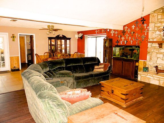 Location,Location,Location! Must see this lovely white brick home on Riverside Dr 4 bedroom 2 bath with carport,large utility room,open floor plan, great stone fireplace,new tile&laminate wood floors in kitchen/dining/living/hall areas, alley access. This home is in walking distance to Uvalde Country Club, golf course, Tractor Supply. Also has security system, workshop with electricity. Master bedroom boast of 2 closets,Double sinks in master dressing area. Lots and Lots of storage. Kitchen has new counter tops and tons of cabinets, plus pantry. New water heater, ceiling fans thru out,double pane windows some w/new wood blinds. French doors lead out to a great patio for entertaining or simple watching wildlife while still in the city. Quiet neighborhood. A great place to come home to.