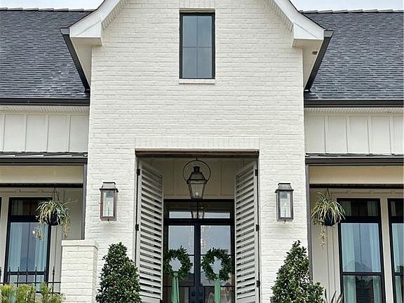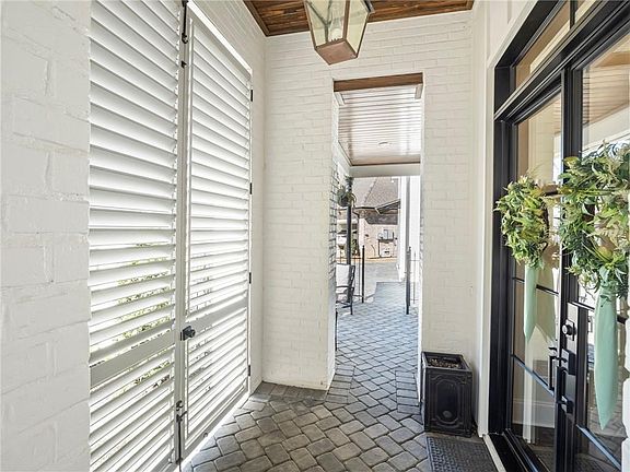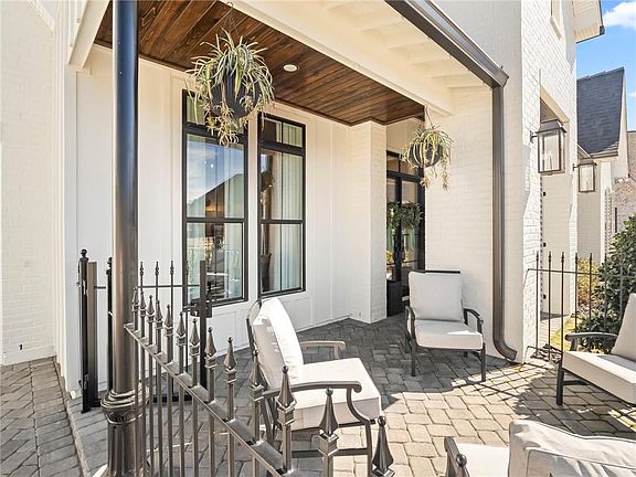 Nothing quite like this stunning home! Built on one of the largest lots in Maison Du Lac, it sits perfectly on the water with a view of the fountain on a quiet cul-de-sac. As you enter through the large front courtyard, you will be wowed as you open the stately glass doors. The exquisite kitchen with Fisher & Paykel appliances, includes a wet bar with ice maker and wine cooler. The 10 ft. quartz island seats 6 with plenty of storage. The open living area has a pass-through gas fireplace that looks into the quaint sitting area. You will not want to leave the outdoor veranda with gas fireplace, electronic privacy screens on every opening, half bath, TV, extensive seating, outdoor kitchen, gorgeous heated pool and hot tub with safety fence and a separate covered boiling porch with hot/cold water sink, natural gas and storage, great for seafood boils. Primary bath has 30 inch porcelain tile with freestanding tub, crystal chandelier and zero entry shower. 2 spacious closets with access to laundry through primary bath. Upgraded Delta/Kohler fixtures and slimline toilets. Designer Visual Comfort and Gabby Lighting. The entire home has gutters and smart sprinkler system. 12 ft. ceilings in main living areas and 10 ft. in bed/baths. Oversized garage fits 3 cars and additional golf cart garage. Staircase in garage leads to attic. Ample storage throughout the house, garage and attic. Security and fire alarm system. Flood zone C