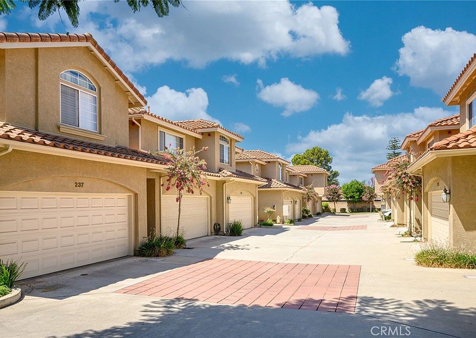 Nestled within a well-maintained 14-unit community where pride of ownership truly shines, this townhouse is move-in ready and waiting for you. As you enter, you’ll be welcomed by high ceilings and a bright, open floor plan. The living room, featuring a cozy fireplace, flows seamlessly into the dining area. The living room French doors opens to your private patio—ideal for enjoying natural sunlight. This home is in immaculate condition with laminated wood floors throughout, central heating and air, and a layout perfect for entertaining. The kitchen boasts granite countertops, a stainless steel sink, filtered water system, freshly painted cabinets and marble floors add a touch of elegance. Upstairs, you'll find three generously sized bedrooms, including a master suite with an ensuite bathroom, featuring dual sinks and ample closet space. The home also includes direct access to a two-car garage, equipped with laundry space and a universal Level 2 EV charger hook-up. Additional guest parking is available making it easy to host family and friends. Wired for an alarm system and with extra parking options, this home combines convenience with security. Located near schools, freeways, public transportation, and shopping centers, it offers everything you need with a low HOA fee. You won’t need to lift a finger—just move right in and enjoy all this stunning townhouse has to offer!