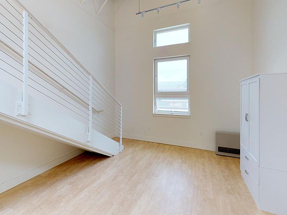 Spacious loftWood plank floorsOpen conceptLarge windowsNewer kitchenTons of lightSpiral staircase
