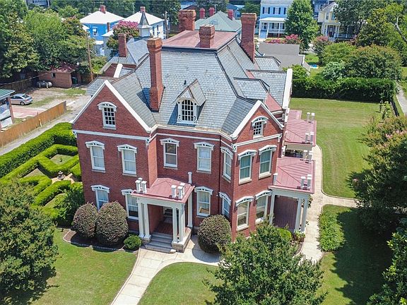 Architectural elegance meets bold sophistication in this fully restored c.1890 all-brick Victorian Empire-Italianate home, ideally situated on a half-acre lot adjacent to historic Poplar Lawn Park. From its striking slate and metal roof to its intricate fluted moldings, arched windows, and decorative wrought iron fencing, this home is a rare blend of timeless craftsmanship and modern comfort.