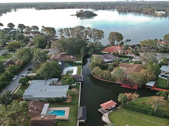 To enter this beautiful Maitland neigborhood by water you enter a short canal that opens up like a waterfront cul-de-sac. Most of this home has been updated. It features a formal dining area, large kitchen with many cabinets and breakfast bar, sun/ breakfast area with New skylights in a very open design with high ceilings. Three bedrooms are all very large and updated. The fourth is attached to garage overlooking the pool and currently serves as an office. A full size pool surrounded by flagstone decking, also features a lanai, summer kitchen with wet bar, and outside pool shower. Garage has a loft with spacious storage. we have a Boat house with a lift. Central vacuum throughout the home. Brand new roof and skylights and all ceilings have been re-done with Knock Down. YOU MUST COME SEE !