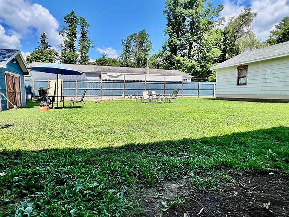 Vintage property is walking distance to everything! 9 miles to Stowe! 2200 sq.ft on two levels with single level living option. Walk out your back door to a peaceful, fully fenced grassy yard, spacious deck and shed. Walk out your front door to walk to walk five minutes to...a movie, dinner, LVRT trail, donuts, banking, library! New August roof! Full 2017 renovations to electric, plumbing, baths and floors. Main floor: walk in to kitchen, dining room, living room, full bath, laundry room and large bedroom with closet. 2nd floor offers 2 stairs: one to each large bedroom. Upstairs bath is double vanity, double commode, and oversized shower. Garage freshly painted and house trim touched up as well. 220v powered, insulated garage for your EV future, 110v powered shed for DIY/hobbies. 9 mi. to Stowe. Local public water/septic/electric. Delayed showings 8/10.