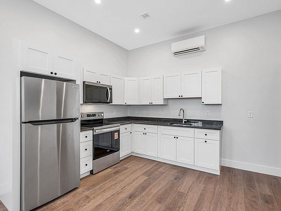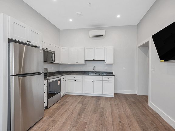 This one bedroom unit blends the character of original stonework, stained glass windows, with sleek contemporary finishes and open-concept living space. The unit features two floors of living space, vinyl flooring, modern kitchen and bath, central AC, large windows, recessed lighting, in-unit laundry, secure access, and off-street parking in gated parking lot. Every detail celebrates refined modern living within a piece of architectural history.