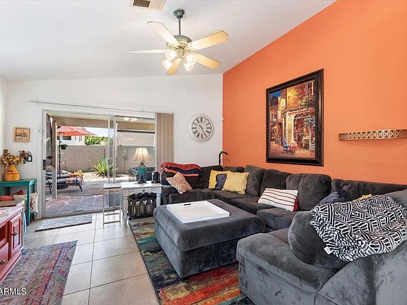 The primary bathroom boasts a separate tub and shower, double sinks, and ample under-sink storage. Outside, enjoy a fenced backyard complete with a SPARKLING private in-ground pool, covered sitting area, and therapeutic spa for ultimate relaxation. The 18'' neutral-colored tile throughout the home adds a touch of elegance.This well-maintained gem is within walking distance to shopping and just minutes from the 101