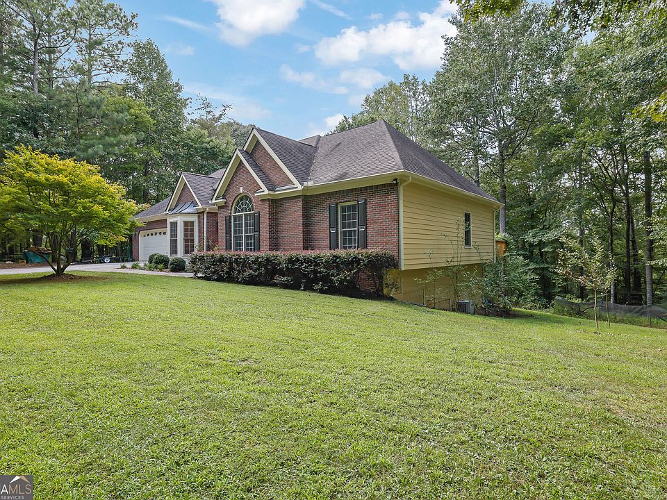 Back on the market due to no fault of the seller! Welcome to your private oasis - where home feels like a vacation retreat! Stunning 3/3 ranch on a finished basement on 5 serene acres, offering everything you need for relaxation and entertaining. Enjoy an inground pool-updated liner (4 yrs), new motor (2025), a rebuilt hot tub (2024), and a tranquil koi pond with water feature, all surrounded by beautiful landscaping. A 12x30 outbuilding with electricity, skylights, and a thermostatically controlled fan, plus a 12x16 storage shed, provides plenty of workspace and storage. Inside, the home features cathedral ceilings throughout, incredible ornate molding, and fresh interior paint throughout. Galley kitchen with abundant cabinet & countertop space & a bar top overlooking the great room. The laundry room offers additional cabinets, countertop space, and a utility sink. New carpet installed in the Master Bedroom and closet. The screened porch is rescreened and re-stained. The finished basement provides flexible living space with a living area, 2 bedrooms, a library with built-in shelving, a full bath, a kitchenette, and unfinished storage. The exterior was repainted just 2 years ago, and all pool furniture remains for your enjoyment. Despite its private, mountain-like setting, this home is just 4 miles from Downtown Ball Ground and I-575, offering easy access to shopping, dining, and entertainment. Well-maintained one-owner home is truly one of a kind! Seller is willing to include pool table & bedroom suite both located in the basement