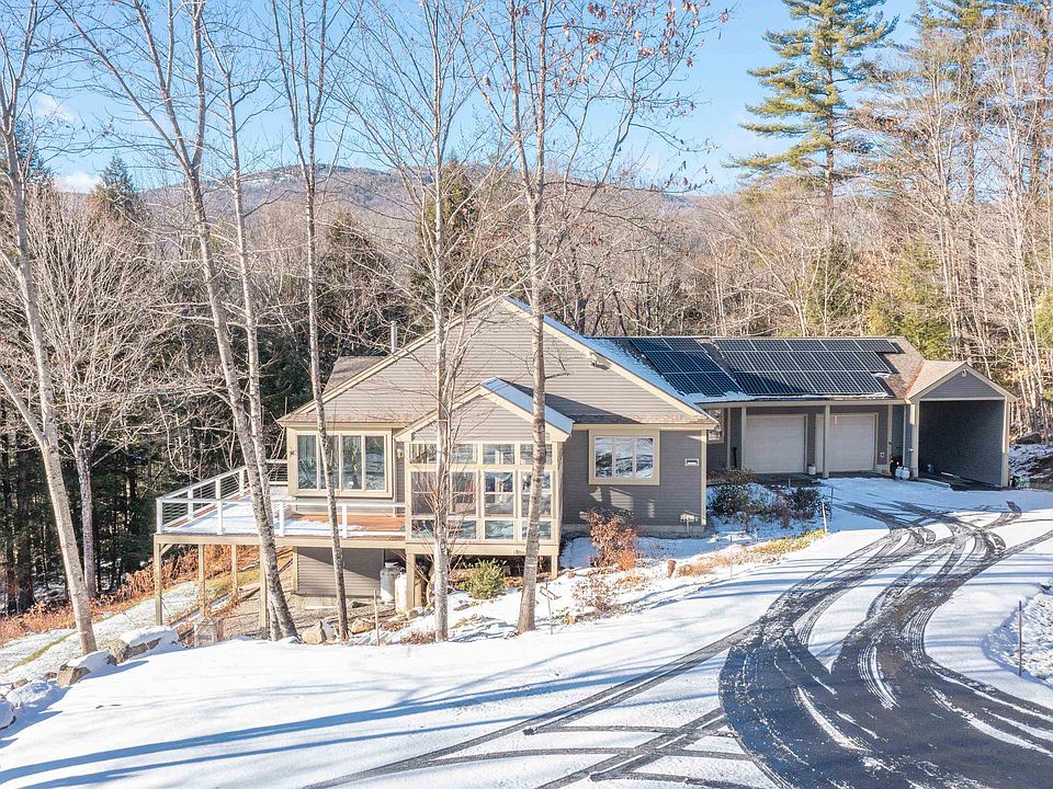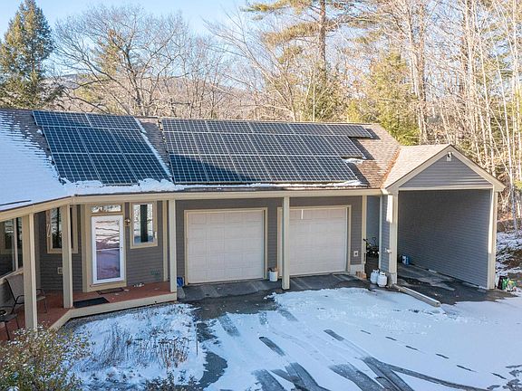 15.60 acres, of privacy with mountain views, glorious sunsets and wildlife. From the moment you walk in the door you will enjoy this home. The main level opens up to the Living room and Family room where you will enjoy the warmth & Vibe of the dual sided gas fireplace. Large windows and skylight let the sun and the views pour in. The deck faces West for all the sunsets! The Dining Room and Kitchen are to the left with a 3 season room just off the dining room. The well appointed Kitchen has a large window overlooking the driveway and flower gardens. Ample counter and cabinet space, gas stove with extra center burner. Perfect for creating some great meals and fun times. There is also a cozy Den/Office, the Primary Suite with walk-in closets, and a 2nd bedroom and full bath. There is a bonus area off the 2 car garage which has the laundry and additional storage space. There is also a carport for small RV/Trailer. All of this on the 1st floor! Downstairs you will find another bedroom, a 3/4 bath, a large Den/ Media Room. There is an additional unfinished area for dry storage or maybe you want to expand? There is plenty of room. Reduce your electrical cost with your solar array. Cooling provided by 3 mini splits. Yes, you will be comfortable here enjoying the walkway and terraced perennial and wildflower gardens, a covered Porch and Firepit. Stunning Views, private location on 15+ acres, yet less than 15 minutes away from Plymouth NH. It just needs you to complete the picture!!