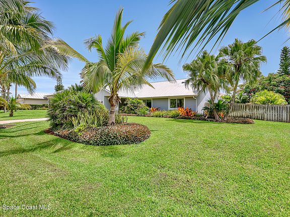 Welcome to Beachside Living at Its Best! Step into paradise with this beautifully updated 3 bdrm, 2 bath, 2 car garage home located just a short stroll from HOA deeded beach access. From the moment you enter, you'll be captivated by the spacious open floor plan featuring a light-filled living & dining area with recessed lighting, sliding glass doors, & a large skylight. The 2019 updated kitchen is a chef's dream, offering quartz countertops, soft-close drawers, 42'' cabinets, black SS appliances, pantry & breakfast bar. A cozy breakfast nook w/ built-in seating & storage adds extra charm & functionality. Retreat to the primary suite, which includes custom walk-in closet & large bonus room w/ sliding doors leading to the pool. The adjoining laundry room offers ample storage & includes washer/dryer. The luxurious primary bath features a double-sink vanity, two-person walk-in shower & a solar tube for natural light. Enjoy endless outdoor fun in the 2021 heated 18'x35' beach-entry pool with spa jets & a paver deck, perfect for entertaining or family gatherings. The covered back porch includes a fully equipped summer kitchen w/ storage for year-round alfresco dining. Additional upgrades & features include:2024 updated Hall bath with tub/shower & vanity,2019 Generac generator, Impact-resistant windows & doors, Baby barrier pool fence & wood privacy fence, Recessed lighting with dimmers throughout, 2019 wood-look tile flooring, Reverse osmosis system, Irrigation system & Metal roof. Water sourced from South Brevard Water Co-op! Don't miss this rare opportunity to live the beachside lifestyle in comfort and style. Paradise truly found!