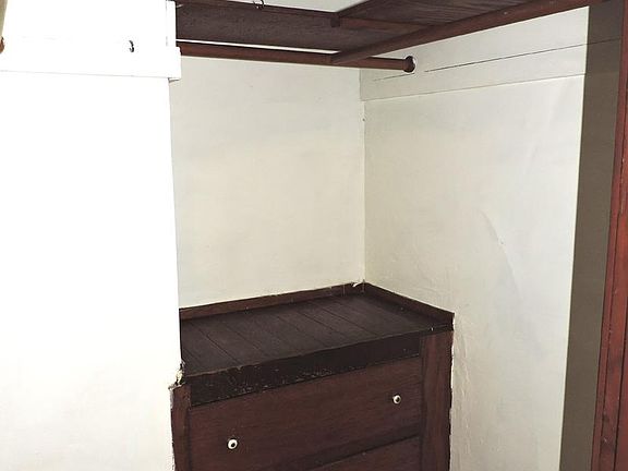 Private backyardLarge foyerCeramic tile floorsDark wood moldingsBuilt-in hutchOriginal claw foot tubGranite countertops