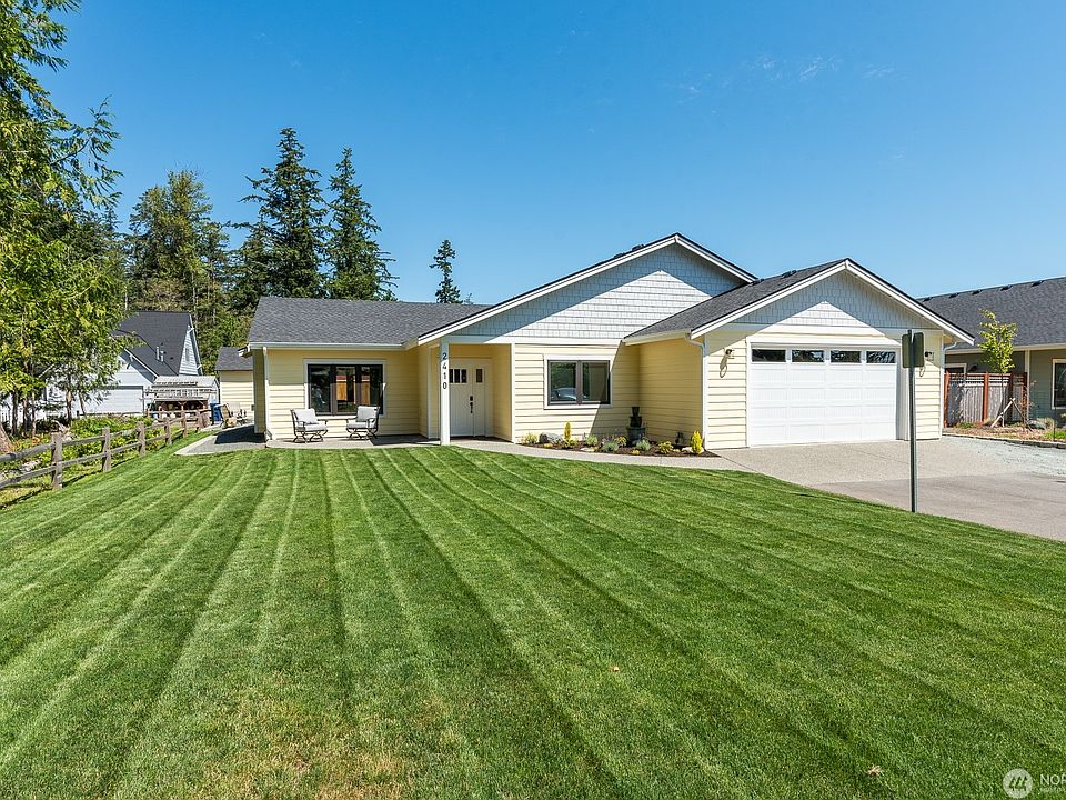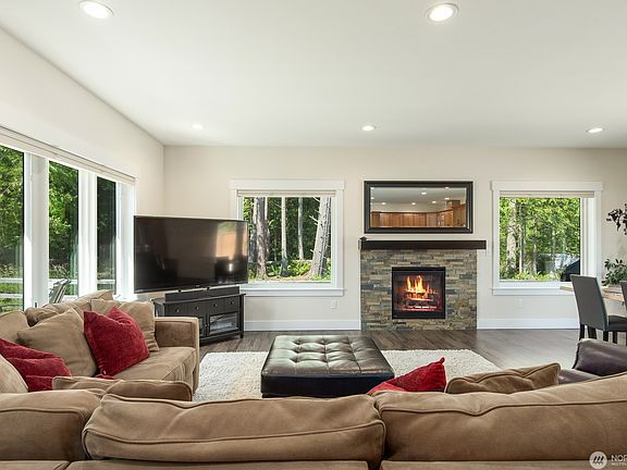 Home is like-new located next to the forest lands on a cul-de-sac. Open living with fireplace, vinyl plank flooring, very nice kitchen with a breakfast bar. Stainless steel appliances, quartz countertops, farmhouse sink. Dining offers french doors to the backyard. Large master suite with walk in closet, dual vanities, tile shower and heated floors. Very nice landscaping with firepit. EV charger in garage.
