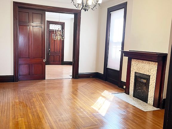 Incredibly spacious 2 bedroom, 1 bath apartment with 10+ foot ceilings. Well maintained, artfully historic, 1st floor apartment. Eat-in kitchen with stainless appliances. Large living room and dining room with hardwood floors and impressive fireplaces.
