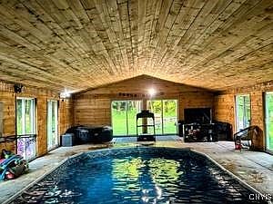 Indoor poolCentral acThree-bedroom two-bathHot tubBright open layoutSleek cabinetryHot water heater