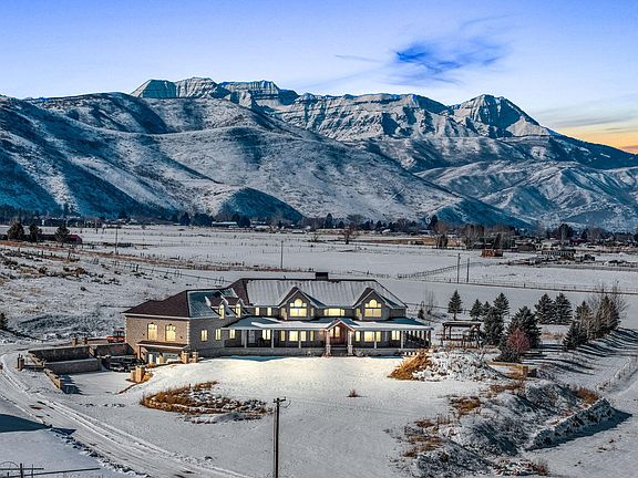 An equestrian dream and development opportunity in the Heber Valley offers an idyllic retreat with breathtaking views of the Wasatch Mountain Range and Mount Timpanogos. Situated on 44.85 acres. The home presents a unique opportunity for those seeking luxury and natural beauty, while the land itself presents a unique opportunity for future development. The home spans over 11,000 square feet, featuring an elegantly designed interior blending elegance with modern convenience. The state-of-the-art kitchen and bar, adorned with hand-carved wood details, create a warm ambiance. The sunroom, library, home theater, and multiple family rooms provide ample space for relaxation and entertainment. The home's open layout ensures a seamless flow between rooms, perfect for hosting gatherings. Outside, an expansive patio beckons for outdoor festivities and barbecues. The vast lawn, with a playground and beach volleyball field, is perfect for children and pets. The outdoor space exemplifies the beauty of Heber Valley. The property includes an attached 8-car garage and a barn with a covered riding arena, ideal for equestrians and outdoor enthusiasts. Living here offers unparalleled advantages. The Heber Valley Private Airport is 5 minutes away, with downtown Heber City and its shopping and dining options nearby. Nearby biking and hiking trails offer exploration opportunities, and Deer Creek Reservoir is just a 10-minute drive away for boating and water sports. Winter sports enthusiasts will appreciate the proximity to the Deer Valley Express Gondola and the new Mayflower resort, only 20 minutes away, with Sundance Mountain Resort just 25 minutes away, offering year-round recreational activities. This extraordinary property represents a rare opportunity to own a slice of paradise in Heber Valley.