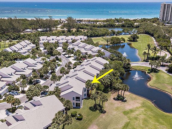 Walk to the turquoise waters of Jupiter Beach from this beautifully renovated 2 level, 3 bed, 3 bath end unit in the gated beachside community of the Estuary. Relax on the screened lanai & enjoy ocean breezes & golf views on the 16th fairway of the Jupiter Dunes Golf Course. This lovely residence offers 3 bedrooms +loft w/pull out sofa; renovated granite kitchen w/custom cabinetry & SS appliances; 3 updated baths, 1 w/tub; wood & tile flooring on main floor w/carpet in loft; huge screened lanai w/direct golf views on a southern exposure; 1 car attached garage; full sized W/D, gated community w/pool & golf; short walk to numerous waterfront restaurants & shops. Available in and off seasonal. No pets, no smoking. A perfect beach retreat. Come live at the beach!