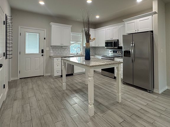 Tucked away in the quiet beauty of the Texas Hill Country, this 3-bedroom, 2-bath home offers the perfect blend of modern comfort and timeless charm. From the moment you step inside, you'll notice the open-concept design and wood-look tile floors that create a warm and welcoming feel throughout the home. The heart of the house is the kitchen - bright, spacious, and perfect for both everyday living and entertaining. A charming island invites family and friends to gather, while granite countertops, stainless steel appliances, and a refrigerator included with your rental make cooking a pleasure. Step outside and enjoy the peace and quiet that surrounds you, all while being just minutes from the convenience of Hwy 281 and Hwy 306. Whether you're heading to Canyon Lake or commuting into town, you'll love this home's balance of serenity and accessibility.