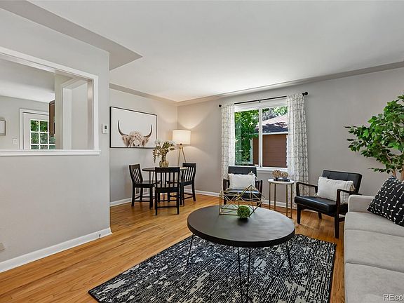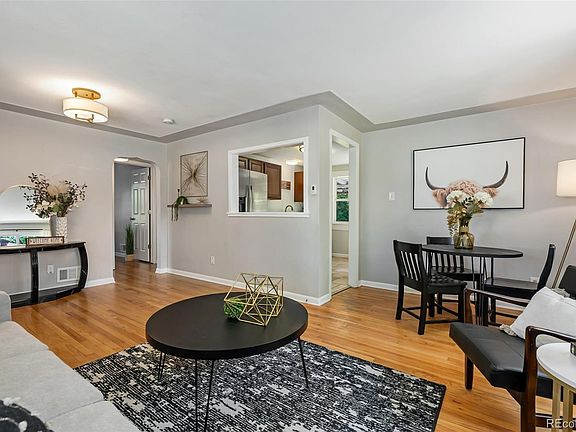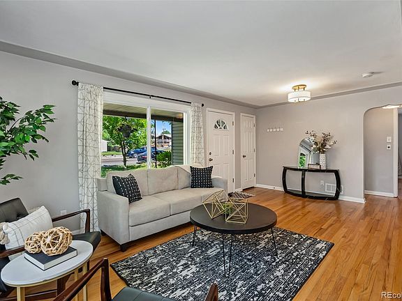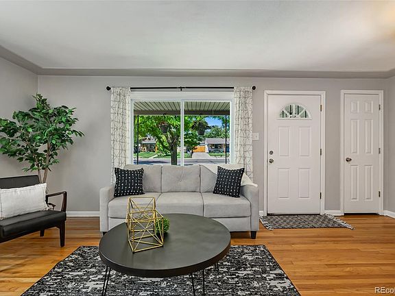 Charming ranch home in Edgewater! This beautifully updated and meticulously maintained residence boasts a bright and inviting floor plan, highlighted by original hardwood flooring throughout. Step into the cozy living room, complete with a quaint dining space and large windows. The updated kitchen includes granite countertops, stainless steel appliances, and a convenient serving window to the living room. The large laundry room doubles as a pantry, adding practicality to your daily routine. This home offers three bedrooms and a full bathroom, providing ample space for rest and relaxation. The large enclosed backyard is a private retreat, complete with a partially covered Trex deck perfect for outdoor entertaining. Mature trees offer shade, while the meticulously landscaped front yard bursts with color. The long driveway provides ample parking spots. Recent updates, including an insulated attic, fixed electrical outlets, and a replaced sewer line, ensure peace of mind for years to come. Conveniently located within walking distance of the Edgewater Public Market, and just a mile from downtown Edgewater and Sloans Lake, this home offers easy access to the vibrant energy of the area. Enjoy a short bike ride or drive to the Highlands, walking distance to Edgewater beer garden, short commute to Downtown Denver, and close proximity to all major highways. Don't miss your chance to own this gem in the heart of Edgewater!
