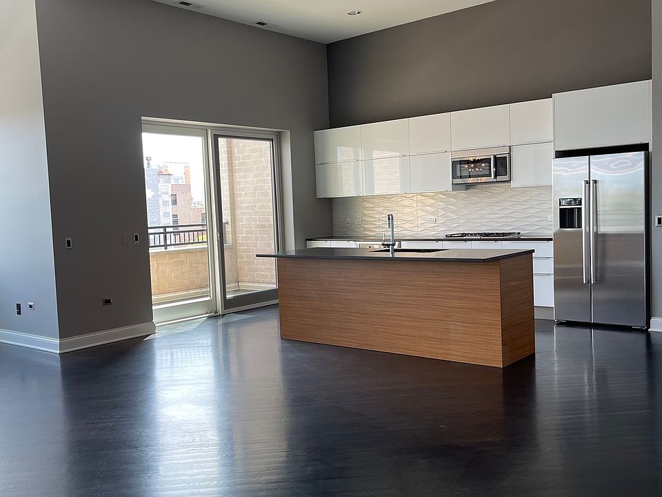 PENTHOUSE in BUCKTOWN!! Experience elevated city living in this stunning top-floor penthouse located in a newer construction, secure elevator building-just steps off the 606 Trail (Bloomingdale Trail)! This is a truly unique opportunity with unparalleled private outdoor space and high-end finishes. Key Features & Luxury Finishes Private Rooftop Oasis: Enjoy breathtaking skyline views from your own enormous 30' x 14' private roof deck, perfect for entertaining. Expansive Living: Dramatic 14-foot ceilings and generous room sizes create a sunny, open, and airy atmosphere. Gourmet Kitchen: Features premium Italian cabinetry, top-of-the-line Bosch stainless steel appliances, and designer Grohe fixtures. Primary Spa Bath: Indulge in luxury with a heated floor, rain shower, body sprays, and an oversized 6-foot "air" bubble bathtub. Convenience: Includes a dedicated laundry room and two private balconies. Tech-Ready: Enhanced with an A/V system and dimmer-controlled lighting throughout. Parking: Two attached heated garage parking spaces are available (a rare find!). Prime Location: You are situated directly on the 606 Park / Bloomingdale Trail, offering immediate access for recreation and exercise Local Hotspot: Located next to Wolf & Company, a vibrant two-story neighborhood hub featuring a coffee shop, deli, butcher, specialty wine/liquor shop, stunning bar, and restaurant. Easy Commute: Only steps to the Blue Line CTA stop and quick access to Metra and major expressways. Agent owned property. Non smoking building. Price includes 1 garage spot, 2nd garage spot available for $200
