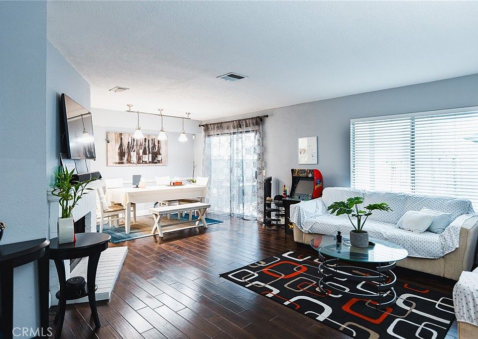 Charming two-story condo nestled in a convenient area of City of Diamond Bar. This lovely property boasts two bedrooms, both situated upstairs, and three bathrooms – two full bathrooms upstairs, each attached to a bedroom, and one powder room on the main floor. The main floor features an open living room, dining area, and kitchen, with laundry hookup conveniently placed in the upstairs hallway. Hardwood flooring throughout the lower level, and a sliding door in the dining area leads you to the backyard.