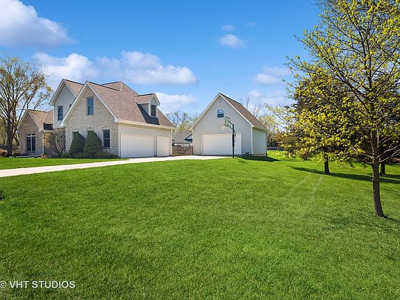 Welcome 24101 W Rose Avenue, a lovely home with an oversized 2.5 car garage with EV charger, and an additional detached 2 car garage (4.5 spaces total), located on a lovely fenced lot in unincorporated Lake Zurich. Enjoy peaceful living at this brick beauty, boasting volume ceilings, hardwood floors, new mechanicals, a whole house generator and a casual vibe that makes you feel happy the moment you arrive. The welcoming foyer sets the tone for this beauty, providing a glimpse of what is to come. The kitchen is the heart of this home, recently remodeled with maple cabinetry, stainless appliances, and granite counters and is open to the living room. This space boasts a gas fireplace, with stone surround and wood accents. Relax and unwind in the family room/sun room-whether you're reading a book, watching TV, or enjoying the view of the lush gardens outside. With its vaulted cedar ceiling, 3 walls of windows, and a potbellied stove, it's a space you'll never want to leave. The first floor primary suite has a cathedral ceiling, spacious walk-in closet, wall closet, and beautifully remodeled bath. The dining room, powder room, and over-sized laundry are also located on this level. Upstairs is home to 3 additional spacious bedrooms and a full bath as well. All this, and the full finished basement provides a large recreation room, separate office/flex room and an abundance of storage. Car enthusiasts enjoy 4.5 spaces, epoxy coating in the attached garage, and a Tesla EV charger. There is even more space in the detached garage, for toys, equipment and additional vehicles, and an added feature-- the loft for additional storage! Step into the fenced yard, and relax on the patio with a built-in grill, or walk through the yard with 60 new Arborvitae, three new raised beds, and gorgeous perennial gardens. Many new upgrades have been added to this home! Act soon to make this beauty your own!