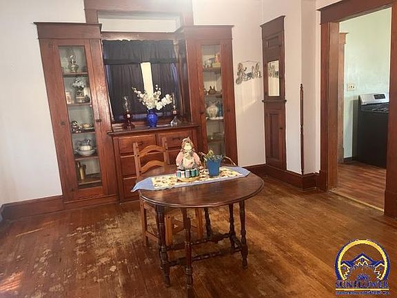 Secluded country home on 8.58 Acres just 15 minutes from groceries and shops this time capsule of history is just waiting for its forever family. Enjoy peace and serenity as the home faces East you can watch wildlife and the sunrise from the covered deck. Soldier creek runs through the property to the north where deer and turkey are known travelers. Included features are a 3 stall 45X30 Morton Building, A large pen that was once used for horses and calving, numerous sheds to house equipment or use for storage. The home features 9' ceilings, original hardwood floors, built ins, and casework throughout majority of the home. This home is on a well water system that has never had lack of water issues.