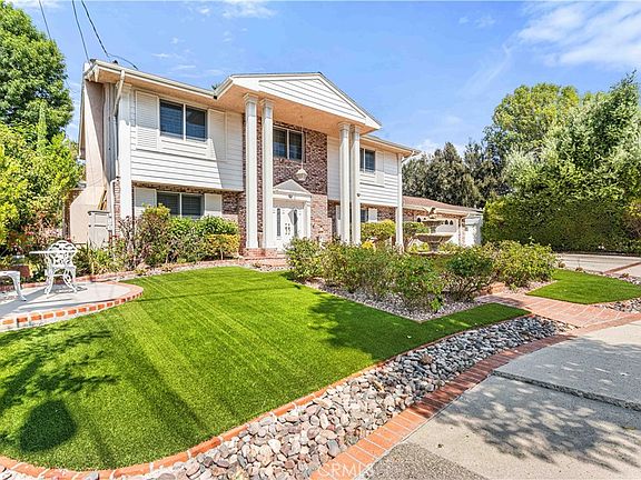 Energy-saving and entertaining are effortless in this spectacular 5 bed, 2.5 bath two-story colonial-style home, tucked away on a quiet cul-de-sac west of Valley Circle in Woodland Hills. Set on a nearly 11,000 sq. ft. flat lot, the private backyard is an entertainer's dream with a swimmer's pool, spa, fire pit, putting green, mini basketball court, and an outdoor kitchen complete with dual BBQs, gas range, beverage fridge, sink, and granite counters. Inside, hardwood and tile floors flow throughout. All five bedrooms are upstairs, including a spacious primary suite with dual sinks and walk-in shower. The upgraded kitchen with island, granite counters, and double ovens opens seamlessly to the dining and family rooms, while sliding French doors connect to the backyard. The living room features crown molding and a marble fireplace for timeless charm. Solar panels help cut costs while powering central HVAC and an EV charging station. Additionally, there is a water submeter to separate irrigation water usage from house water usage, this saves money on the DWP bill. A sprinkler drip system saves water, too! Close to award-winning schools Lockhurst Elementary, Hale Charter Academy, and El Camino Real Charter High plus easy access to Hwy 101, The Commons at Calabasas, Topanga Village, and Ventura Blvd dining and shops. Available unfurnished for $8,000/month or furnished for $9,500/month. One-year lease desired. This Woodland Hills gem offers modern amenities, classic style, and a lifestyle of comfort and convenience. Inquire today!