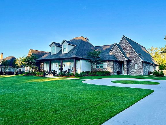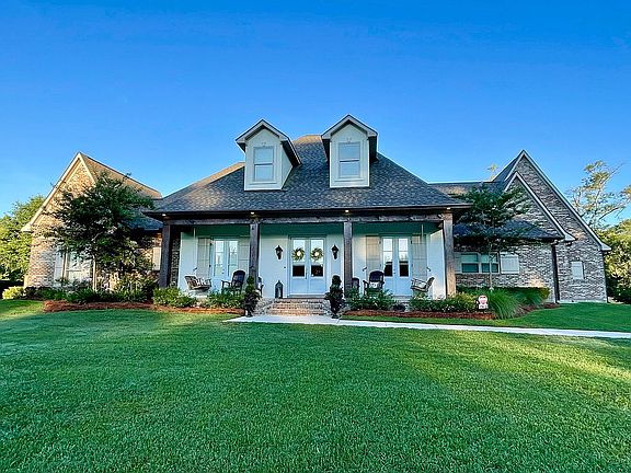 Elegance, privacy and sophistication combine in this exquisite 4 bedroom home nestled on 2.28 acres with manicured grounds. Custom beaded board ceilings are featured on the front, rear and side porches. You will love the finishing touches and amenities that are only of the highest grade. The stylish interior offers a fresh, clean feel. Livingroom features two french doors leading to the covered patio, a brick fireplace and custom built-in cabinetry. The large kitchen is an equipped gourmet kitchen with stainless steel appliances and a extra large island. The office/mudroom sits just off the office with custom built-ins as well as the massive laundry room. All bedrooms are spacious and master bath features double vanities, a large soaking tub and custom tile shower. The master closet features custom shelving and a island for plenty of storage. The large game/media room is perfect for entertaining. Enjoy your evenings outdoors under the covered patio with an impressive outdoor kitchen and views of the private pond. This home is extremely efficient with blown in fiber insulation in walls and attic, along with energy efficient windows throughout. Electricity bill is a constant $200 per month, yes, $200 a month. The three A/C units are top notch on efficiency and cooling and also aids significantly in the energy efficiency. Hardie Board soffit and fascia on the entire home and will never be affected by weather or wear. Whole home Crestron audio and video management, all centered around the brain of the network in the storage room and not visible to your guests. The home is also protected by state-of-the-art alarm system, including outdoor cameras and DVR storage. System is tied in to an off-site monitoring company, along with video view capability on the Den and Master Bedroom televisions. Outdoor storage garage is big enough for a boat, along with your mower and four wheeler. The home's elevation is 2 feet higher than the peak flood elevation height in 2016.