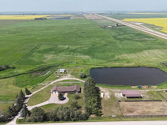 Unreserved Auction Alert: Auction on Oct 21/25 bidding opens Oct 16 - List price is 3rd party appraisal valuation only & no bearing on final price or value. Take advantage of a rare opportunity to acquire premium development land strategically positioned just 15 minutes east of Calgary in Strathmore, Alberta. This shovel-ready property directly offsets the highly anticipated De Havilland Field development and offers exceptional access, services, and development potential. The site boasts ½ mile of direct Hwy 1 frontage and ½ mile of RR 263 frontage, ensuring maximum visibility & connectivity for future commercial or light industrial operations. This property offers a unique opportunity to capitalize on early-mover advantage next to a transformative industrial development. With servicing, permitting, and engineering groundwork already in place, developers can fast-track timelines and unlock substantial potential. Currently zoned agricultural, there is also a 1982 blt, 3394± sq ft home w/ (5) bdrm, (4) bth.