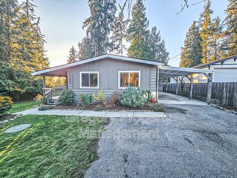 Fully Updated, Clean First Time Rental! Quiet Desirable Neighborhood in Bothell! 2bed 2bath + Bonus Room and Office area! Huge backyard. Extra-large driveway with carport. * Updated Kitchen with quartz countertops and plenty of modern white cabinets. New stainless-steel appliances. Countertop overhang to fit barstool seating. * Built-In office wall area with standing desk and beverage refrigerator. * Spacious living room with Movie Theater Projector and electric fireplace. * Bonus area that can be used as a game or craft room. Includes an attractive pull-down Murphy bed for guest. * Laundry area with washer & dryer included. *Gather around the outdoor firepit for entertaining/relaxation or enjoy the privacy of the beautiful large backyard from the patio. * Outside sheds for extra storage, work bench. * Open layout with plenty of natural light. *Plank hardwood floors throughout. Only minutes from Alderwood Mall, Costco, parks & walking trails. Easy access to I-5/405 Pets OK OR visit our web site Gregory Property Management dot com and click "schedule a showing" Please Note: We don't accept Zillow Applications.