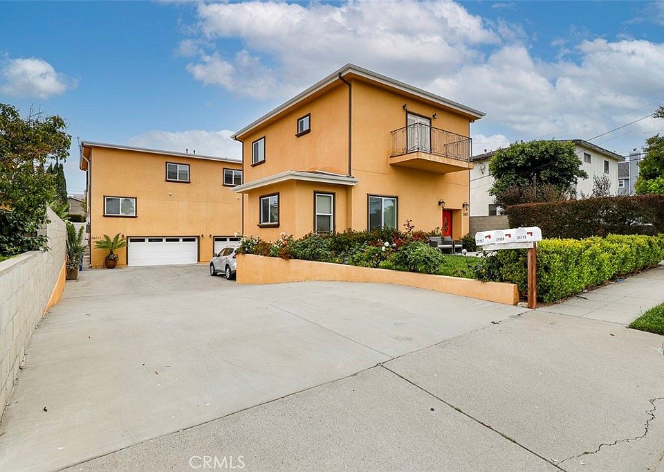 Just like new! Modern, stylish Lomita home. Prepare to be dazzled by this lovely townhome. This home was built in 2016 and maintained perfectly. Showcasing a thoughtfully designed split-level open floor plan, ideal for modern living. Featuring a chef's kitchen and dining area, seamlessly flowing into a spacious sunken living room. The upper level houses three bedrooms and two and a half baths for convenience and comfort. This home features laminate flooring, abundant white cabinets, self-closing drawers, and top-tier stainless steel appliances, including a side-by-side refrigerator. Revel in the luxury of matching quartz countertops and a full marble backsplash. Retreat to the primary suite boasting two walk-in closets, dual vanities, a spacious shower, and a balcony for outdoor relaxation. Two additional bedrooms share a beautifully appointed full bathroom. Crown and base molding, recessed lighting, a laundry area, and automatic fire sprinklers add to the allure of this home. Convenience is key with a roomy attached 2-car garage providing direct access. This townhome, part of a self-managed HOA, offers a desirable lifestyle with its proximity to restaurants, parks, shopping centers, schools, and major freeways. Don't miss the opportunity to call this meticulously crafted residence home.