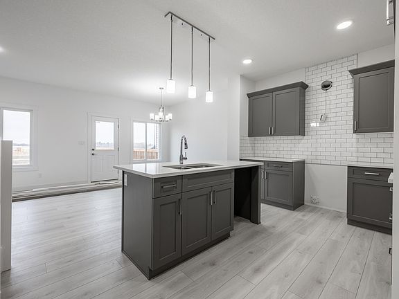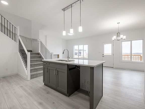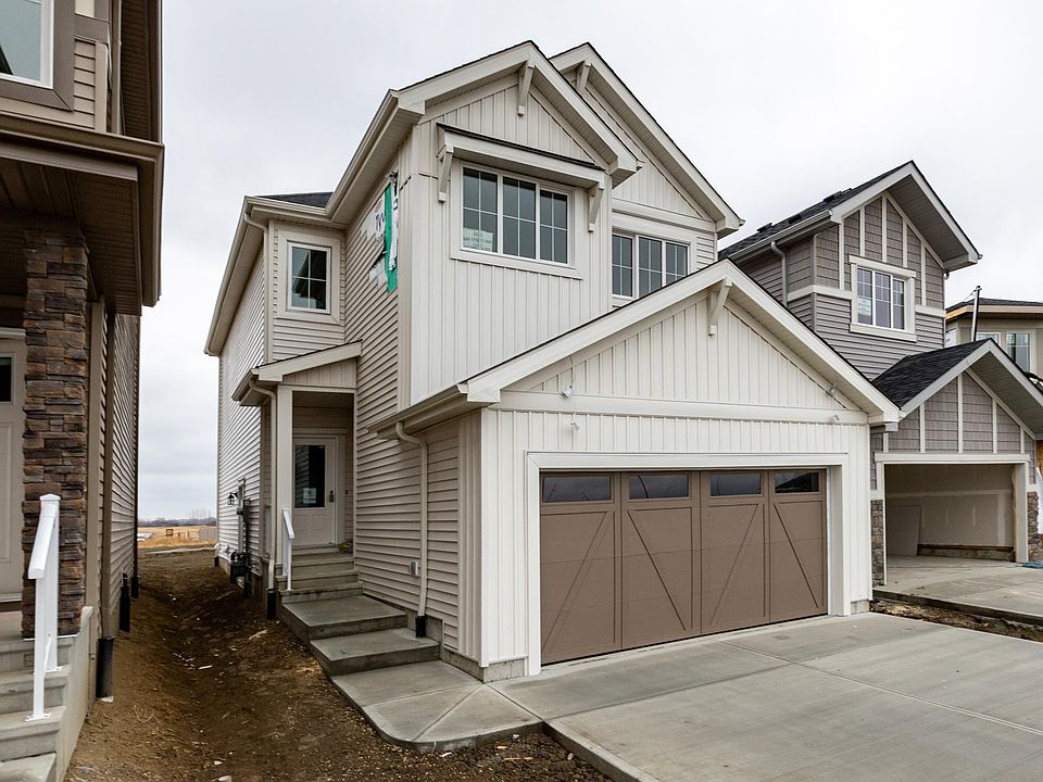 The Uplands at Riverview provides a lively lifestyle unlike any other in West Edmonton. A community-built with your kids in mind. Akash presents the 'Bedford-Z'; this zero lot line home offers stunning features, quality craftsmanship, and an open-concept floor plan that makes day-to-day living effortless with its functional design. Your main floor offers 9' ceilings, laminate flooring, and quartz counters. You'll enjoy a spacious kitchen with an abundance of cabinet and counter space, soft-close doors and drawers, plus a walk-through pantry! Your living room offers comfort and style, with an electric fireplace and large windows for plenty of natural light. Rest & retreat upstairs, where you'll enjoy a large bonus room plus 3 bedrooms, including a primary suite designed for two with its expansive walk-in closet and spa-inspired ensuite! SIDE ENTRANCE **PLEASE NOTE**PICTURES ARE OF ACTUAL HOME.
