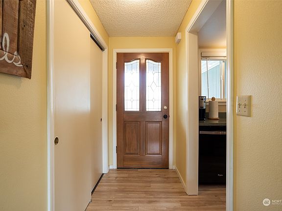 This cozy rambler boasts a comfortable living room with a beautiful gas fireplace as its centerpiece, perfect for relaxing on chilly evenings. The newer flooring adds an updated touch to the home. The 3 bdrms provide ample space for sleeping or working from home, while the 1 3/4 baths allow for plenty of options. The 1.5 car garage offers enough parking for a vehicle and some storage/workshop space. The vinyl windows upgrade energy efficiency while the well-manicured yard provides space for outdoor living. The gas stove, furnace, and hot water heater provide energy efficiency and cost savings. This charming home is perfect for those looking for comfort and convenience in a quiet, welcoming neighborhood close to town and steps to the trails.