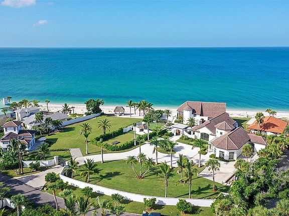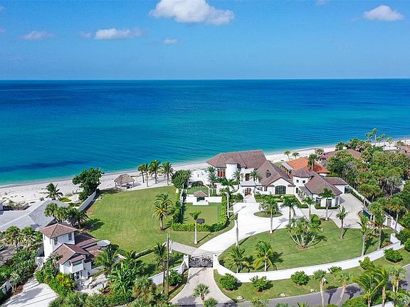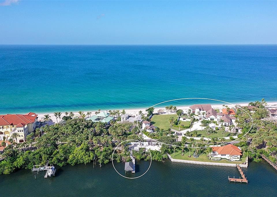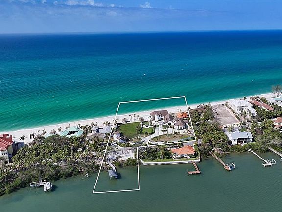Introducing a rare and extraordinary opportunity to own one of the largest and most coveted properties on Casey Key. This sprawling 2.08-acre estate, featuring an impressive 300 feet of pristine Gulf of Mexico beachfront, is the epitome of coastal luxury. With exclusive Gulf-to-Bay access and 90 feet of Intracoastal Waterway frontage, this property offers unparalleled privacy and endless possibilities for those seeking the ultimate family compound or private retreat. Located in the highly sought-after Estates section of Casey Key, this property offers the best of both worlds: seclusion amidst nature’s beauty and proximity to Sarasota’s vibrant cultural scene. Known for its unspoiled, low-density charm, Casey Key is home to fewer than 400 residences and attracts celebrities, CEOs, and authors who value the island’s quiet elegance and convenient access to the mainland via bridges at both ends. The estate boasts a main residence along with two charming guest houses, providing ample space for family and friends. Expansive grounds set the stage for unforgettable gatherings and entertainment, while the private beach offers direct access to the Gulf’s sparkling waters. Enjoy breathtaking panoramic views from every angle, including a beach-front pool with an infinity edge—perfect for soaking in Florida’s sunset skies. The property also features a grandfathered-in covered boat dock with a 16,000-pound boat lift, offering direct access to the Gulf and Intracoastal Waterway for boating enthusiasts. For the discerning buyer, this estate presents a prime opportunity to renovate the existing structures or to design the home of your dreams, tailoring it to your exact vision. Whether you’re looking for a serene getaway, a legacy family home, or an entertainer’s paradise, this exceptional estate is ready to fulfill your aspirations. The main house was built in 1987, guest house #1 was built in 1977, and guest house #2 was built in 1990. Casey Key offers a rare blend of nature’s tranquility and unparalleled access to Sarasota’s world-class amenities. Live the life you’ve always dreamed of in a one-of-a-kind coastal sanctuary. Don't miss your chance to own a piece of paradise on one of Florida’s most desirable barrier islands.