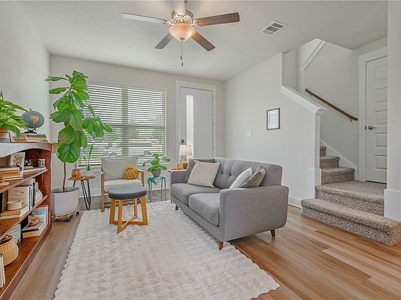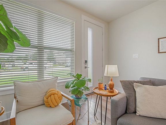 2 Bedroom, 2.5 Bath townhome features an open concept floor plan and an efficient bedroom design upstairs The upstairs bedroom is suite-like with its large walk-in closet and on-suite bathroom.. The upstairs hallway has a laundry room between the two bedroom. The upstairs bedroom overlooks the pond and walking trails. This floor plan is both practical and lacking nothing.