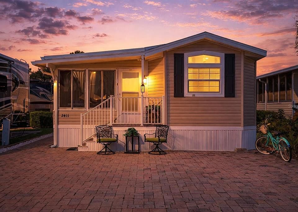 Discover an exceptional opportunity to own a beautifully maintained and thoughtfully appointed 1-bedroom, 1-bath cottage with a spacious all-seasons room, located in a highly sought-after RV Resort community just 12 miles from Walt Disney World®. The well-appointed kitchen comes complete with Whirlpool refrigerator, Bosch dishwasher, range, microwave, and a stackable washer and dryer. Inside, you’ll appreciate the high ceilings, double-step crown molding, transom windows that fill the space with natural light, abundant built-in cabinetry, a tiled walk-in shower, pantry cabinet, and other thoughtful design details throughout. Outdoor features are equally impressive, with upgraded pavers providing ample parking, a wide walkway, and an integrated shed equipped with an exhaust fan and floor-to-ceiling storage. Residents of Elite Resorts at Citrus Valley enjoy a gated community with outstanding amenities, including two resort-style bathhouses, laundry facilities, clubhouse, pool, bingo, and a variety of social and entertainment events. The quarterly condo fee includes lawn care, grounds maintenance, cable, internet, water, sewer, trash, clubhouse access, pool, and security gate. Low-maintenance living allows you more time to relax, socialize with neighbors, and enjoy nearby attractions. Whether you’re seeking a winter retreat or a year-round residence, this home delivers the Florida lifestyle you’ve been waiting for. Schedule your private showing today and experience it for yourself.