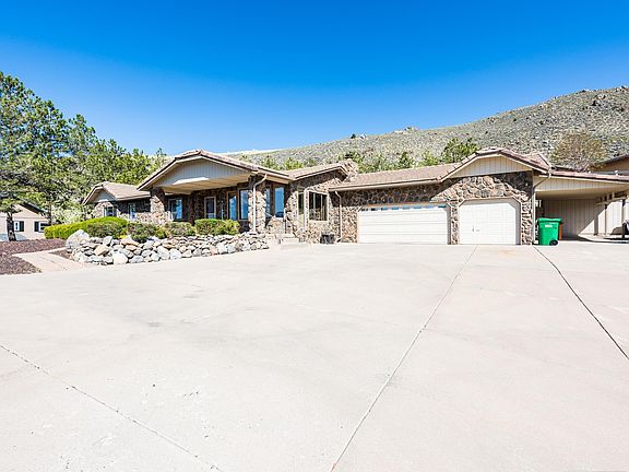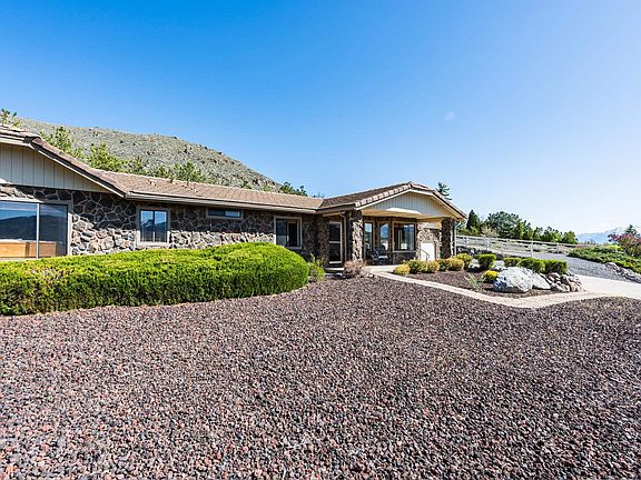 Take a look at this beautiful custom home on 1 acre. Backing to BLM land this home overlooks central Carson City with the most beautiful views around. You can see from Job's Peak to Slide Mountain with breathtaking scenes of the Sierras to the west. This home features large bedrooms with wonderful storage and 2 of the 3 bedrooms have their own spacious bathrooms and closets. The primary bedroom features a separate suite which is currently in use as an office., The home is filled with large picture windows, kitchen has large pantry with a freezer inside and a living room, dining room combo near the beautiful fireplace. Three car garage and carport along with a large storage shed are included, third garage was converted to office with bathroom but could easily be returned to it's original state. The lot offers a large area to the east that could possibly allow for a barn, since horses are allowed, or workshop to be built by the buyers.