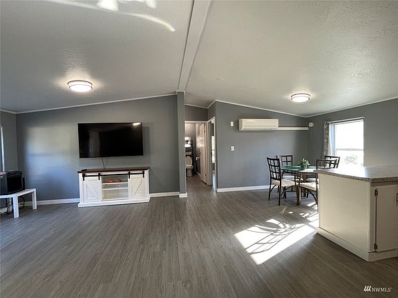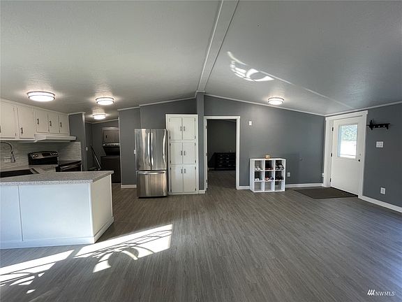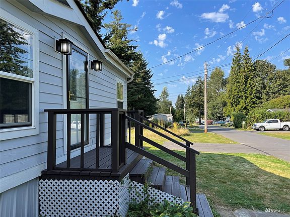 Beautiful, move in ready double wide home with lots of extras. Recent updates include newer flooring throughout, kitchen sink, back splash, bathroom vanity, new siding and fresh exterior paint. Stainless steel appliances included. The home offers 3 bedrooms and two baths, primary bedroom has walk in closet, dual sinks and private bath. Mini split with heat pump, Outdoor storage shed. Large covered composite deck. Close to access to I-5. Park is for all ages! (Space Rent is $740 a month and includes W/S/G)