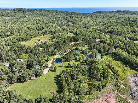 Imagine living on 11.48 acres with your own private ponds, a creek running through your back yard and only minutes away from the shores of Lake Superior. This unique home features 5 bedrooms, 3 bathrooms, 3 kitchens, a large family room with in-floor heat, main floor laundry and a four season porch. With an abundance of natural light, you'll fall in love with all the stone, brick, natural wood and slate finishes that this home offers. This amazing property is currently being used as Silver Creek Bed and Breakfast which could easily be converted back into a single family home by simply removing the bookcase and exposing the brick archway between the new addition family room and main kitchen. The new owners could also continue to rent this property as a bed and breakfast and have a steady income, only after county approval. All three units (the Cottage, Fireside and Loft) have separate exterior entrances and all living amenities.