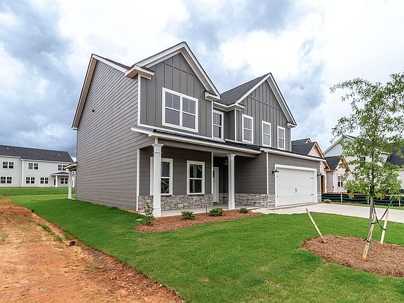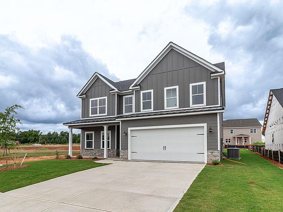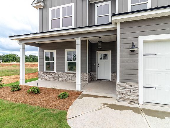 The Gunner III Plan by South GA Homes. You'll love this 5 bedroom/3 bath home with great curb appeal. Covered back porch with outdoor fireplace. Enter through foyer, dining room on right with coffered ceiling and judges panels. Beautiful wood stair threads and iron spindles on the staircase. Open floor plan to Great Room with fireplace and kitchen with breakfast area. Large kitchen island with farmhouse sink. Quartz countertops, tile backsplash. Downstairs bedroom/study, full bathroom downstairs. Mud bench. Owner's suite upstairs with Accent coffered wall and his and hers walk-in closets. Separate tub with tile surround, tile shower, double vanities with quartz countertops, 3 additional bedrooms and 1 full bath in hallway upstairs. Double garage, landscaped with sprinkler system, 30-year arch. shingles. Room sizes are approx., if important please verify. If schools are important, please verify with county. NOTE: Photos of are a like home and not exact to this home. Features and Fixtures may be different in this home. Close to major dining and shopping, less than 10 minutes away Fort Eisenhower Gate 1 and I20 Exit 194 Belair Road or Exit 190 Grovetown Ga