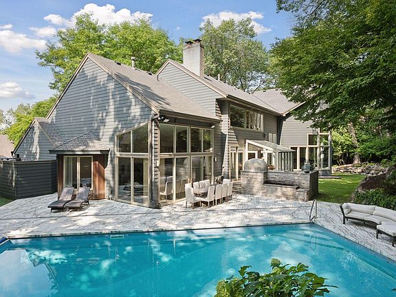 Tucked away in the sought-after Hilloway neighborhood of Minnetonka, this extraordinary residence offers the rare combination of architectural presence, private setting, and resort-style amenities. Approaching through the winding, tree-lined streets of Sherwood Forest, it’s easy to forget you’re only minutes from downtown Minneapolis and Lake Minnetonka. The home is positioned on a half-acre wooded lot, providing privacy and natural beauty. The backyard is designed as an entertainer’s dream. A heated pool with a water fountain serves as the focal point, complemented by a stone patio, outdoor kitchen, and ample seating areas for gatherings large and small. A sport court invites both casual play and competitive games, while the surrounding landscaping adds to the sense of retreat. Inside, the home reveals six bedrooms across three levels and a thoughtful balance of open spaces and more intimate rooms. The dramatic two-story family and dining room sets the tone with soaring ceilings and expansive windows that flood the interior with light. The main floor also features a chef’s kitchen with stainless steel appliances, generous counter space, and a large center island. This hub of the home connects to a casual dining area and cozy family room with fireplace. An office with wooded views provides a quiet workspace, while a main-level bedroom offers flexibility for guests or extended family. Upstairs, a catwalk leads to three secondary bedrooms and a full bath. The owner’s suite occupies its own wing, complete with a spacious walk-in closet and spa-like bath. The lower level is perfect for watching movies, working out, or enjoying a game of ping pong, this level provides plenty of options. It includes an additional bedroom and bathroom, plus generous storage space.