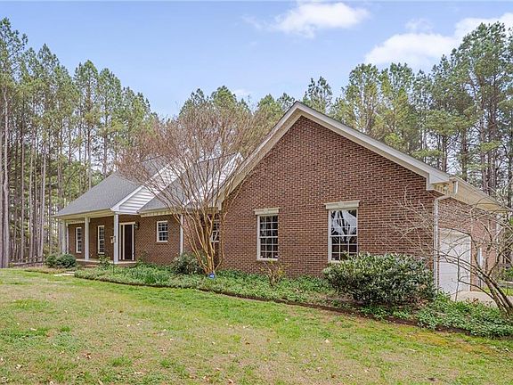 Experience the serenity of single-level country living on almost 4 private acres, complete with a stocked pond, in-ground pool, and mature trees providing privacy in every direction. This low-maintenance, all-brick home features a side-entry garage and a welcoming covered front porch. Inside, hardwood floors flow through the living room, hallway, sunroom, and kitchen, adding warmth and character. The updated kitchen boasts 42” gray flat-panel cabinets, granite countertops, and a full suite of appliances. The split-bedroom offers a spacious primary suite w/ a walk-in closet and a glamour bath with a jetted tub, separate tile shower, and double sinks. A formal dining room provides an elegant space for gatherings, while the party bar area, with its wall of windows overlooking the pool and lush backyard. The partially closed crawlspace, complete with an 8-mil vapor barrier & dehumidifier installed by Sawyers, adds peace of mind. Don't miss your chance to make this private retreat your own!