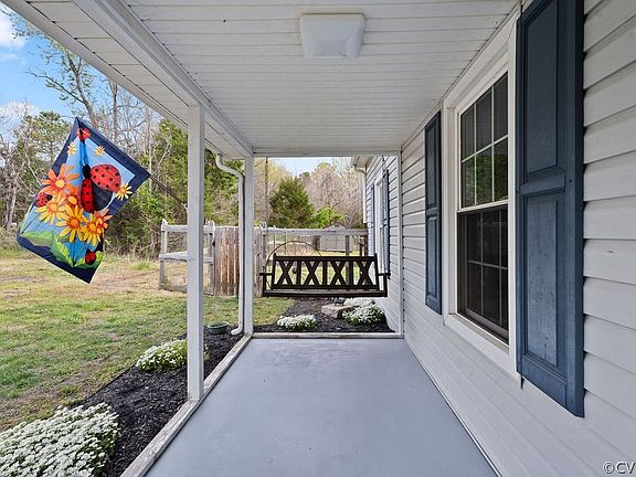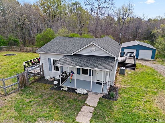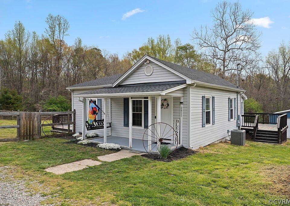 Choo, Choo! Wave to the conductor as you swing in the breeze on your front porch. This 2 bedroom, 1 bath home is like a cottage from a story book. Set at the end of the street, it is tucked away from the hustle and bustle of everyday life, yet still located in Eastern Powhatan for a quick commute to Midlothian via Route 60 or Route 360. This home has maintenance free vinyl siding, replacement windows, and new HVAC in 2023. The large family room is open to the kitchen with an island and stainless steel appliances. The laundry room is right off of the kitchen and leads onto the back deck. There is also a very large side deck off of the dining room that spans the entire depth of the house! It has a built in bench at the back and abundant room for grilling and chilling. There is also a large, fenced in side yard with a newer storage shed. Behind the house is a huge 28x35 metal, 4 car garage (2 cars deep on each side) on a concrete slab. Under $300k for an updated, stick-built home in Powhatan.........you cant beat this deal!